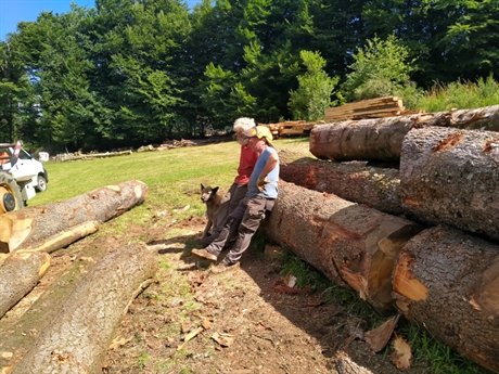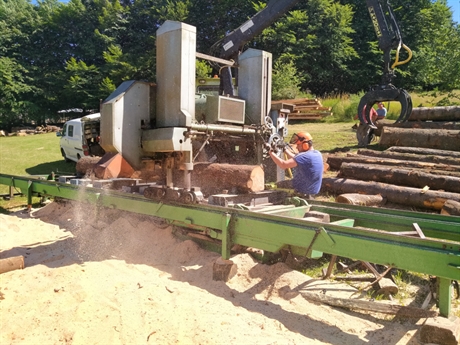 Juillet 2021 : Etienne a posé sa scie mobile au hameau de Tinteyne pour la dernière fois, 30 ans après son 1er chantier de sciage à Sales.